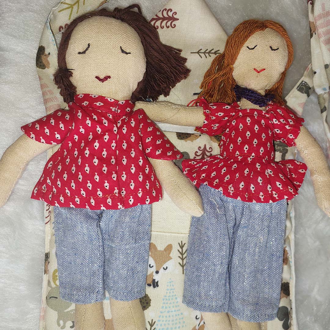 Meet Handloom Hearts, a pair of lovingly handmade fabric dolls that carry the warmth of tradition and the charm of simplicity. Dressed in vibrant red printed tops and soft denim pants, these dolls bring a blend of modern comfort and artisanal craft. With their stitched smiles, cozy cotton bodies, and timeless appeal, they’re perfect companions for storytelling, gifting, or simply adding a handcrafted touch to your space.
